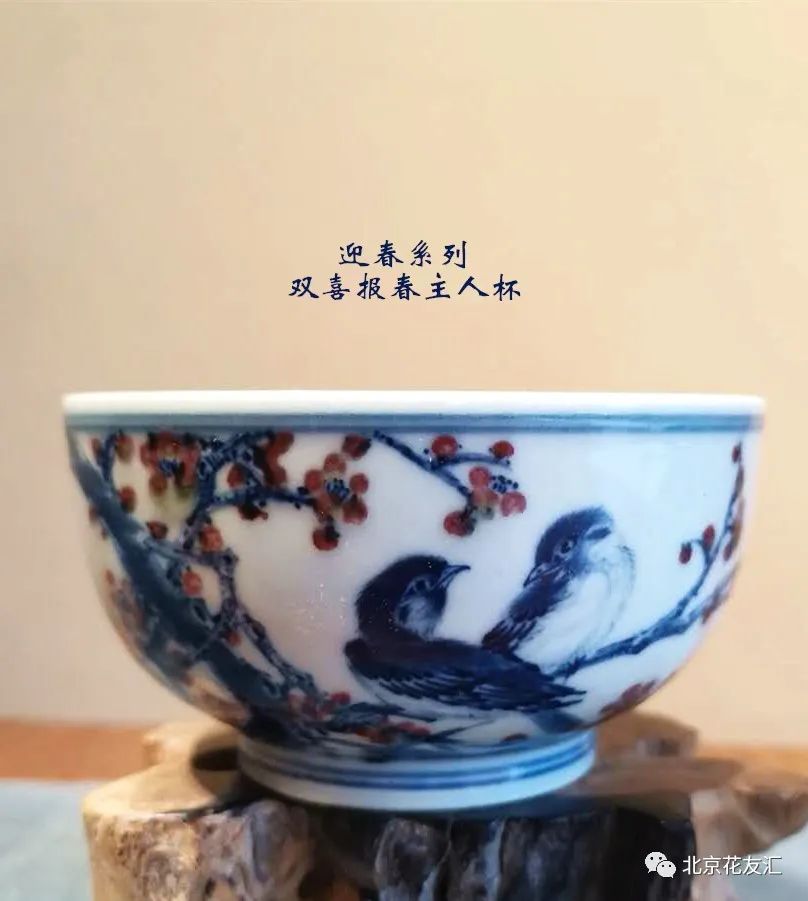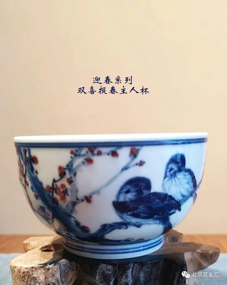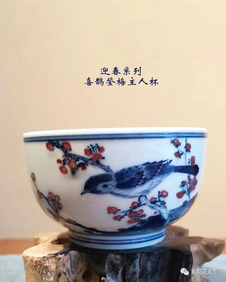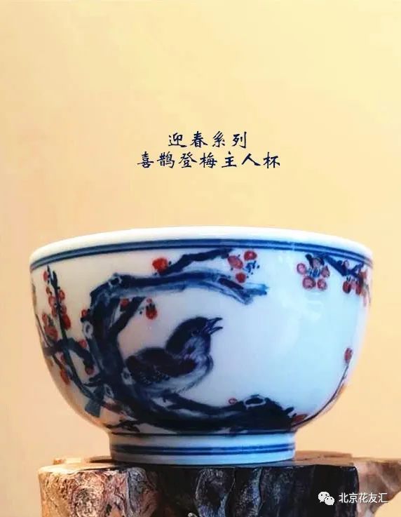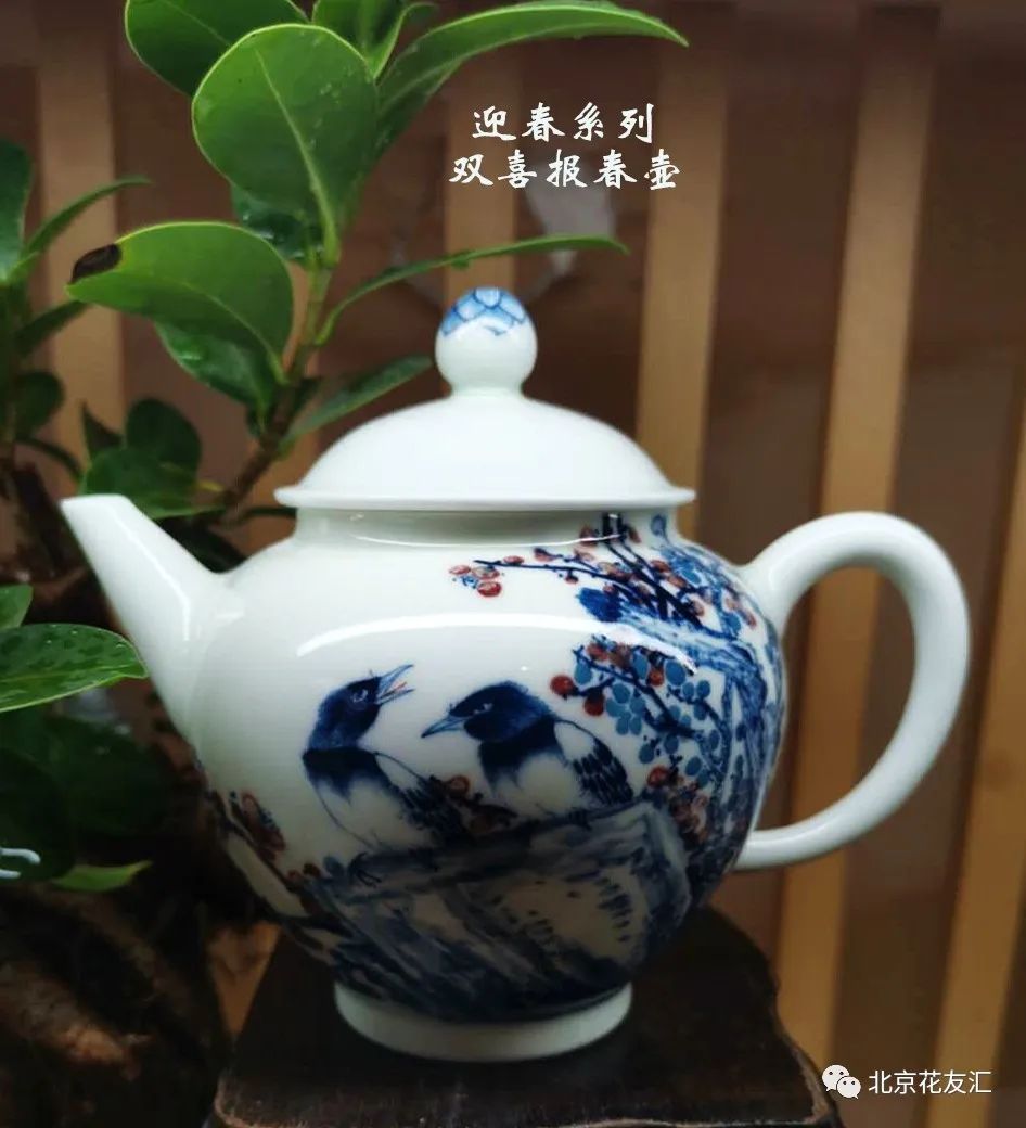 闻着茶香,看着青花釉里红的喜鹊登梅,